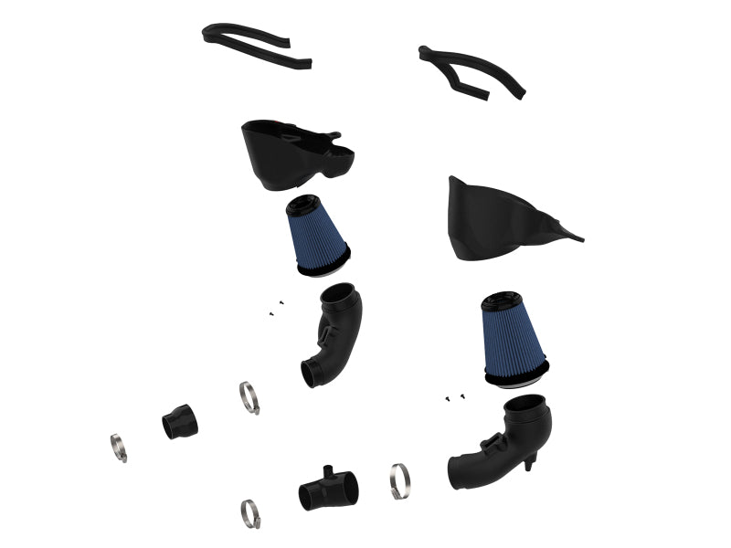 These 360-degree radial flow air filters feature our pre-oiled Pro 5R media with five layers of progressively finer cotton gauze media for maximum performance. They provide your engine with the largest amount of high-flowing air, usually resulting in the highest power gains out of all our filter media options. This media is perfect for street and/or track use. Their inverted bullet-style tops makes for more filter surface area, resulting in longer service intervals. The included performance air filters are surrounded by open-element XLPE polymer (cross-linked polyethylene) housings that minimize warm engine air for maximum performance. The open design allows for easy viewing of the air filters and delivers an aggressive Air Intake sound. They utilize the vehicle's OE air inlets with no additional hardware. This system features high quality, computer-designed, dyno-tuned intake tubes to achieve maximum power gains while maintaining a perfect fit. Their XLPE material is heat soak resistant and extremely durable. The computer designed system utilizes factory mounting locations, minimizing the use of unnecessary hardware and ensuring a perfect fit every time. Its innovative design makes for a hassle-free, direct bolt-on installation process that requires no cutting or drilling. It features our patent pending filter-to-housing interface that uses half the number of parts of a traditional cold air intake system.