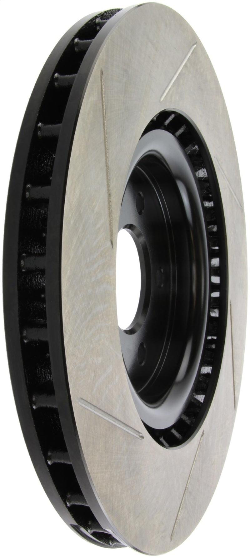 StopTech Slotted Sport Rotors are 1-piece direct replacement brake discs for factory brake systems and stock calipers that look great behind your wheels – and offer significantly improved braking performance. The unique slotting aids with heat and brake dust dispersal, prevents glazing of the pads, adds bite and improves wet and dry braking performance. Built to last, the black e-coating provides protection from corrosion and the high carbon metallurgy (in most applications) offers quieter operation, better crack resistance and increased performance.