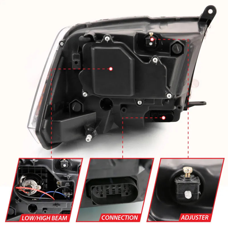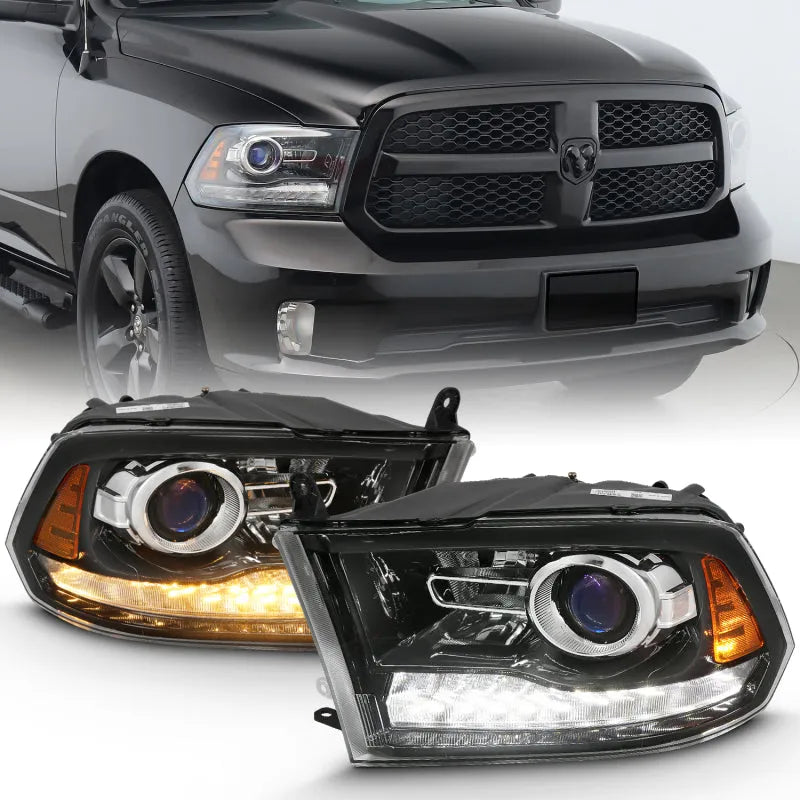 ANZO 2009-2018 Dodge Ram 1500 Projector Plank Style Switchback H.L Halo Black Amber (OE Style)
