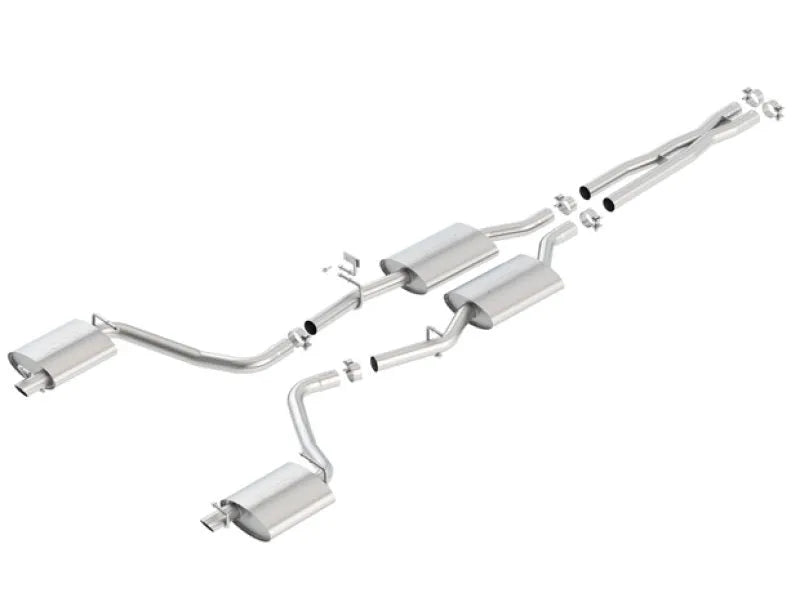 This Borla exhaust system for the Charger V6 contains a merge X-Pipe for increased performance and improved sound. Tips NOT included use factory bezel/ valance. BORLA® Cat-Back™ and Axle-Back exhaust systems feature patented straight-through and multi-core technology designed to unleash hidden horsepower. Increased exhaust velocity adds power, driving excitement, fuel economy, and the distinctive BORLA® Sound of Power respected by motoring enthusiasts everywhere.
