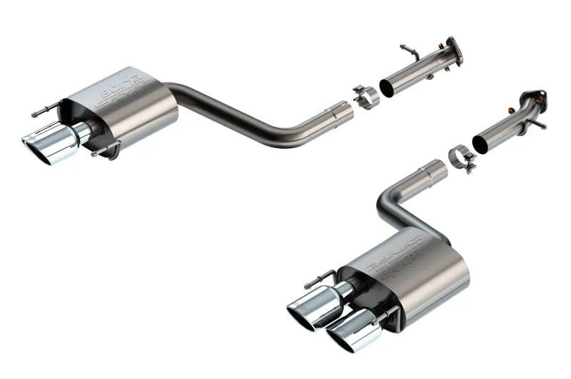 Add optional mid section 60738 to this Axle-Back system to create a Cat-Back™ system. Part number 60738 is designed to work ONLY with BORLA® Axle-Back systems 11981 & 11981BC. Installation of 60738 REQUIRES cutting the mid section of the stock exhaust behind the catalytic converters and welding inlet pipes to rear of the catalytic converters. The BORLA® mid section features a Merge X-Pipe and will increase the overall sound volume while maintaining the S-Type tone of 11981 & 11981BC.