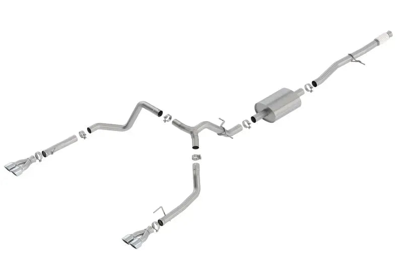 Factory split rear exit vehicles ONLY. Add Adapter 60708 for Crew Cab with Standard Bed (6' 7") 157" Wheelbase vehicles. This 3" diameter into dual 2.75" BORLA ® Cat-Back™ exhaust system for the Silverado features the classic S-Type sound level with no drone inside the vehicle, and dual 3.5" X 3.28" "square" bright chrome on T-304 stainless steel tips on each tail pipe. Installation REQUIRES removal of the Factory Valance Tips. Systems with black chrome on T-304 stainless steel tips, carbon fiber tips, and systems that resue the original equipment tips are also available. BORLA® Cat-Back™ and Axle-Back exhaust systems feature patented straight-through and multi-core technology designed to unleash hidden horsepower. Increased exhaust velocity adds power, driving excitement, fuel economy, and the distinctive BORLA® Sound of Power respected by motoring enthusiasts everywhere.