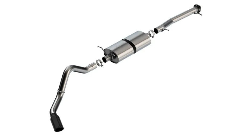 EXCEPT Diesel engine. EXCEPT vehicles with Dual Rear Wheels. This 3.5" diameter Cat-Back™ exhaust system for the Chevy Silverado / GMC Sierra features the classic BORLA ® S-Type sound with no drone inside the vehicle. The exhaust exits thru a 5" round black chrome on T-304 stainless steel tip. Using BORLA® Stainless Steel Polish p# 21461 is NOT recommended with these black chrome tips. We suggest cleaning the tips with hot water and a microfiber cloth. A system with a bright chrome on T-304 stainless steel tip is also available. Add Extension Pipe 60713 for Crew Cab With Long Bed 172" Wheelbase vehicles. BORLA® Cat-Back™ and Axle-Back exhaust systems feature patented straight-through and multi-core technology designed to unleash hidden horsepower. Increased exhaust velocity adds power, driving excitement, fuel economy, and the distinctive BORLA® Sound of Power respected by motoring enthusiasts everywhere.