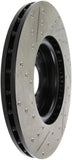 StopTech Drilled and Slotted Sport Rotors are 1-piece direct replacement brake discs for factory brake systems and stock calipers that look great behind your wheels – and offer significantly improved braking performance. The unique cross-drilling and slotting aids with heat and brake dust dispersal, prevents glazing of the pads, adds bite and improves wet and dry braking performance. Built to last, the black e-coating provides protection from corrosion and the high carbon metallurgy (in most applications) offers quieter operation, better crack resistance and increased performance.