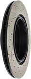 StopTech Drilled and Slotted Sport Rotors are 1-piece direct replacement brake discs for factory brake systems and stock calipers that look great behind your wheels – and offer significantly improved braking performance. The unique cross-drilling and slotting aids with heat and brake dust dispersal, prevents glazing of the pads, adds bite and improves wet and dry braking performance. Built to last, the black e-coating provides protection from corrosion and the high carbon metallurgy (in most applications) offers quieter operation, better crack resistance and increased performance.